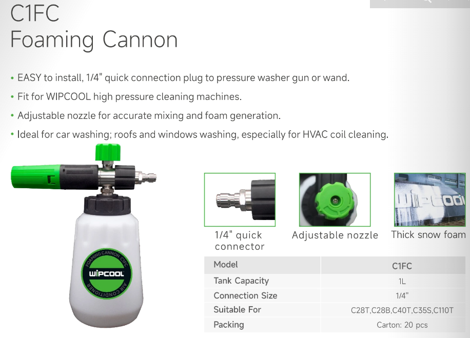 Cañon de espuma 1L 1/4" C1FC WIPCOOL